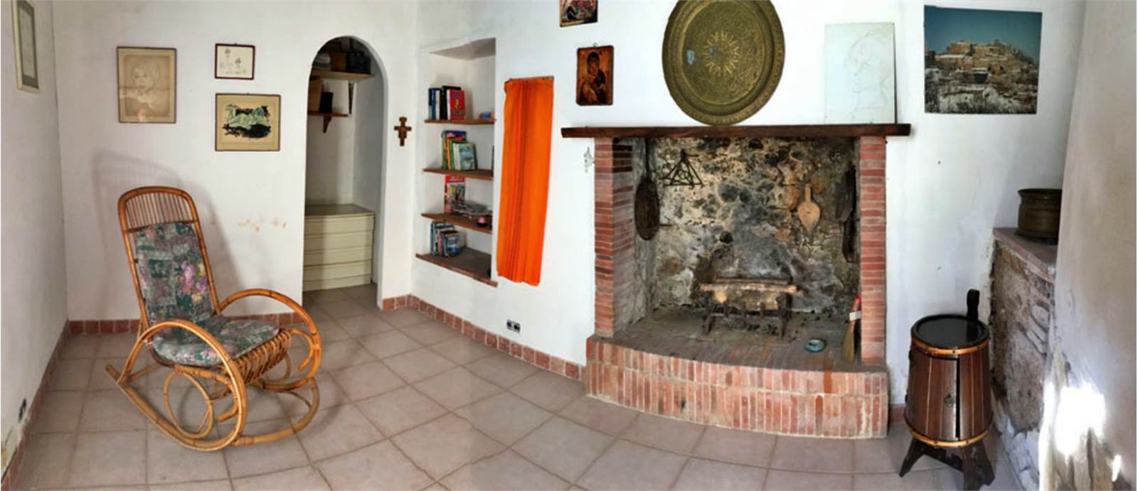 Ground floor: large room with hand-painted tile flooring and fireplace; and guardrobe room;