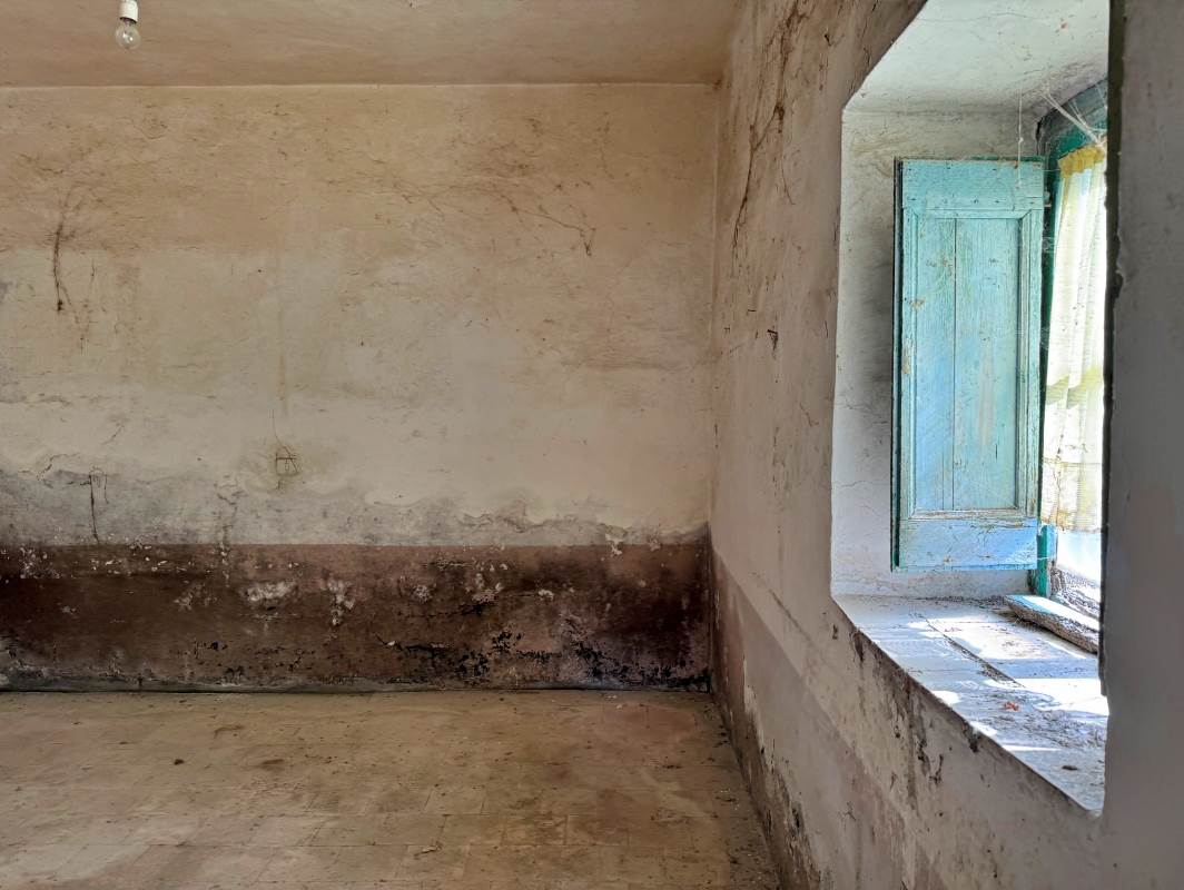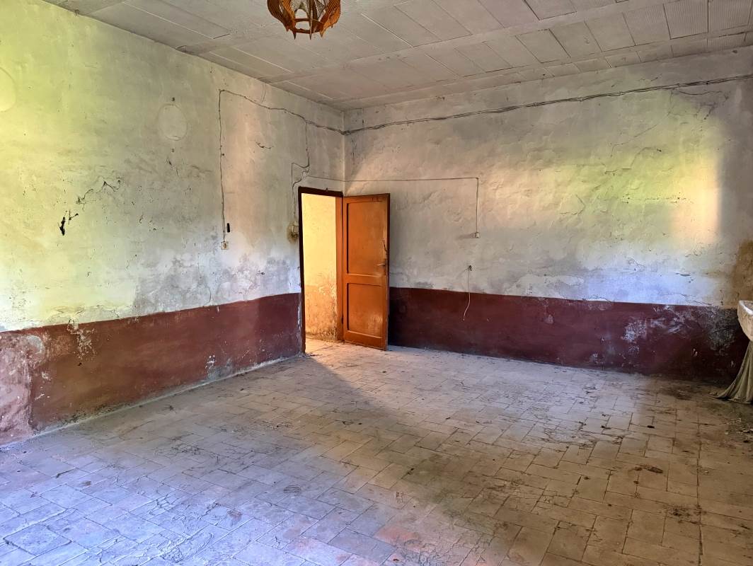 The property, in need of renovation, includes a garage, a cellar, and a large plot of almost 2 hectares. It’s ideal for nature lovers or for those wishing to create a small farm with vineyard, olive grove, or vegetable garden.