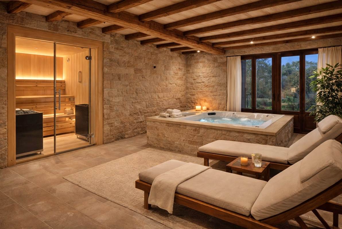 Il piano terra dispone di un laboratorio di 250 mq, attualmente utilizzato per attività produttive ma facilmente trasformabile in due appartamenti indipendenti o parzialmente da adibire a centro benessere con sauna, bagno turco e idromassaggio, aumentando così il potenziale abitativo della villa.